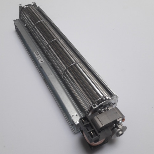 In a tangential blower, the air is drawn in over the entire length of the fan impeller. Inside the impeller, the airflow is diverted and accelerated by the vortex created by the rotation of the impeller.