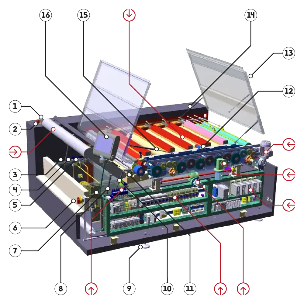 Hover over the red active points to enter a new section of the drawing indicated by the point itself.