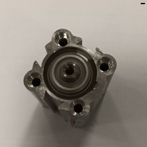 Pneumatic air cylinder constructed using stainless steel for both the tube and the rod and aluminium for the end-blocks.
