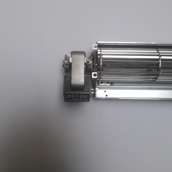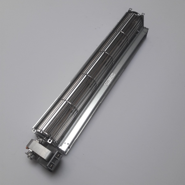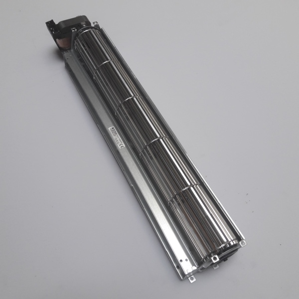 In a tangential blower, the air is drawn in over the entire length of the fan impeller. Inside the impeller, the airflow is diverted and accelerated by the vortex created by the rotation of the impeller.